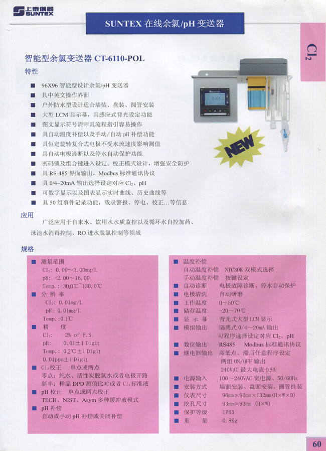 智能型余氯变送器CT-6110-POL
