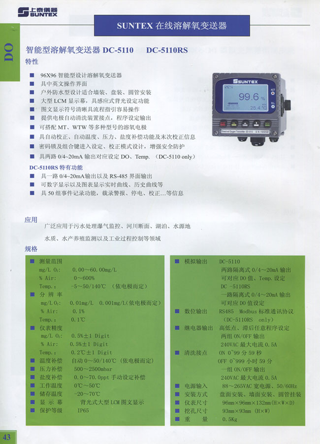 智能型溶解氧变送器DC-5110 DC-5110RS