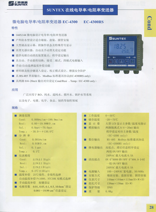 微电脑电导率/电阻率变送器EC-4300 EC-4300RS