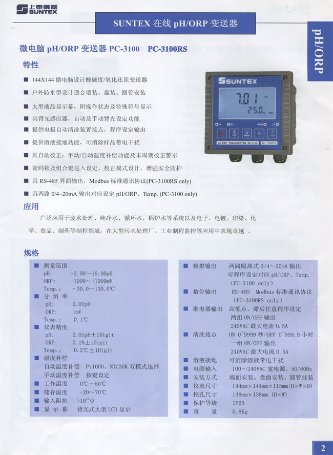 微电脑 pH/ORP变送器 PC-3110 PC-3110RS